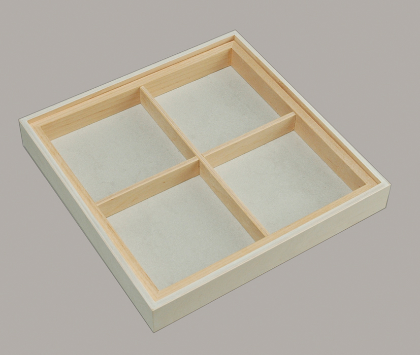 - Einteilung: 4 quadratische Fächer (ohne Lade)